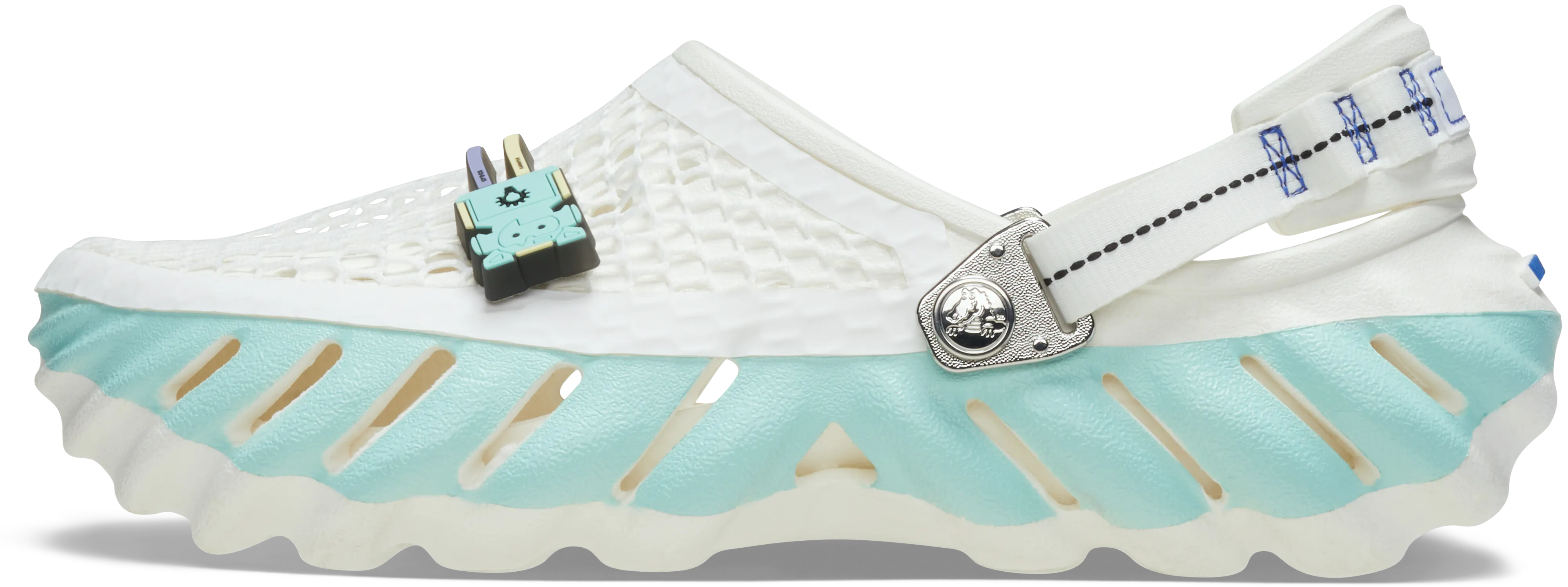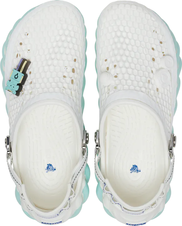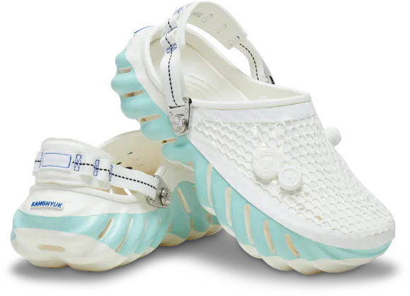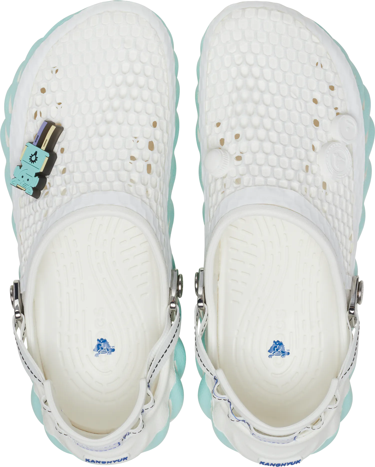The Kanghyuk x Crocs Echo Clog takes on bold dimension with unconventional styling. Net texturing and bold stitching mimic design details from vehicle airbags, with light-up Jibbitz™ charms that look like airbag valves and deploy mechanisms. A beacon of unconventional style, the Kanghyuk Echo Clog was made for driving fashion forward.