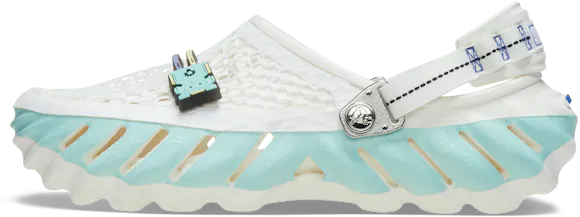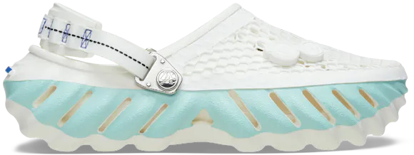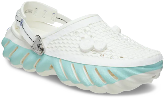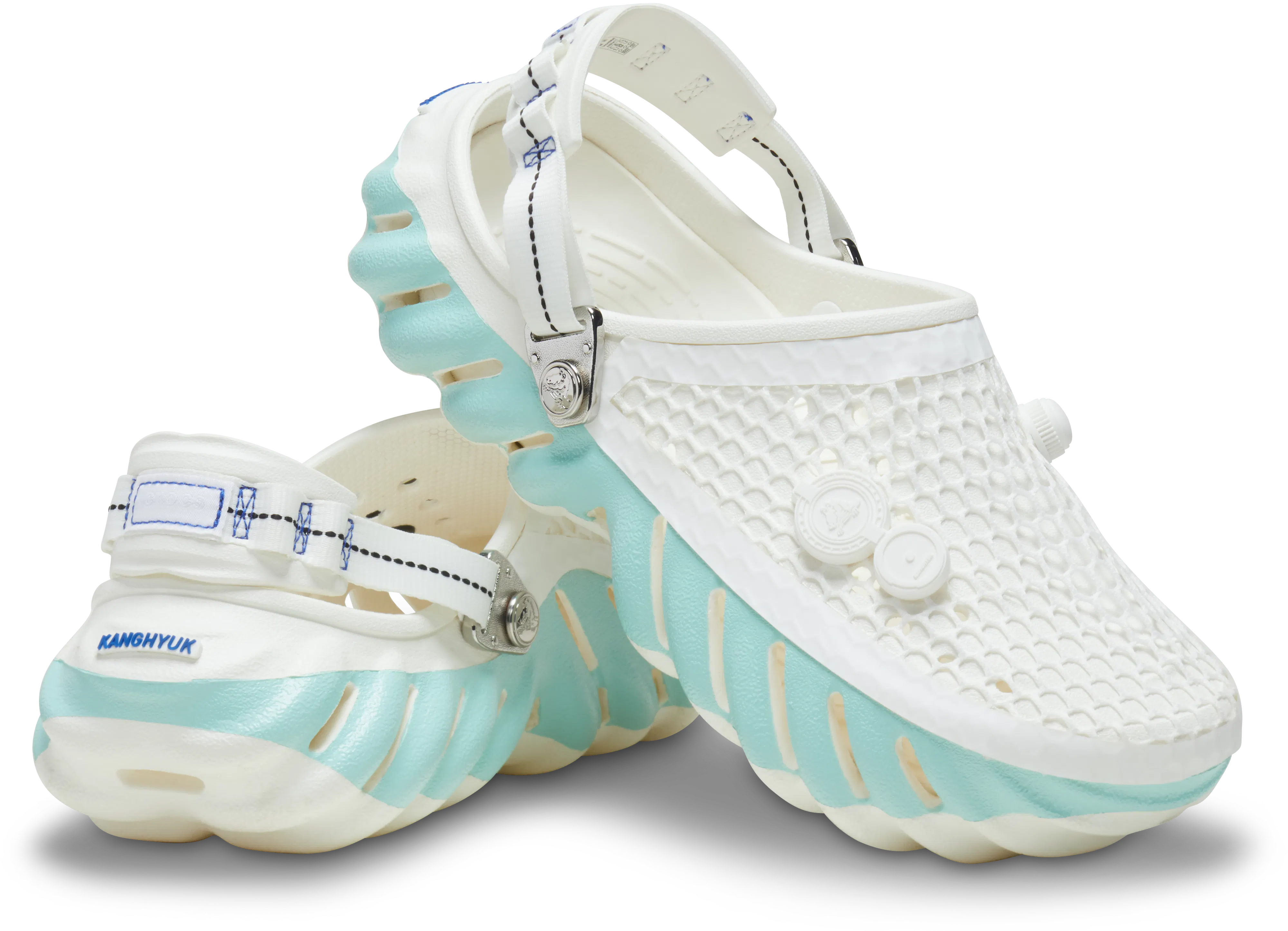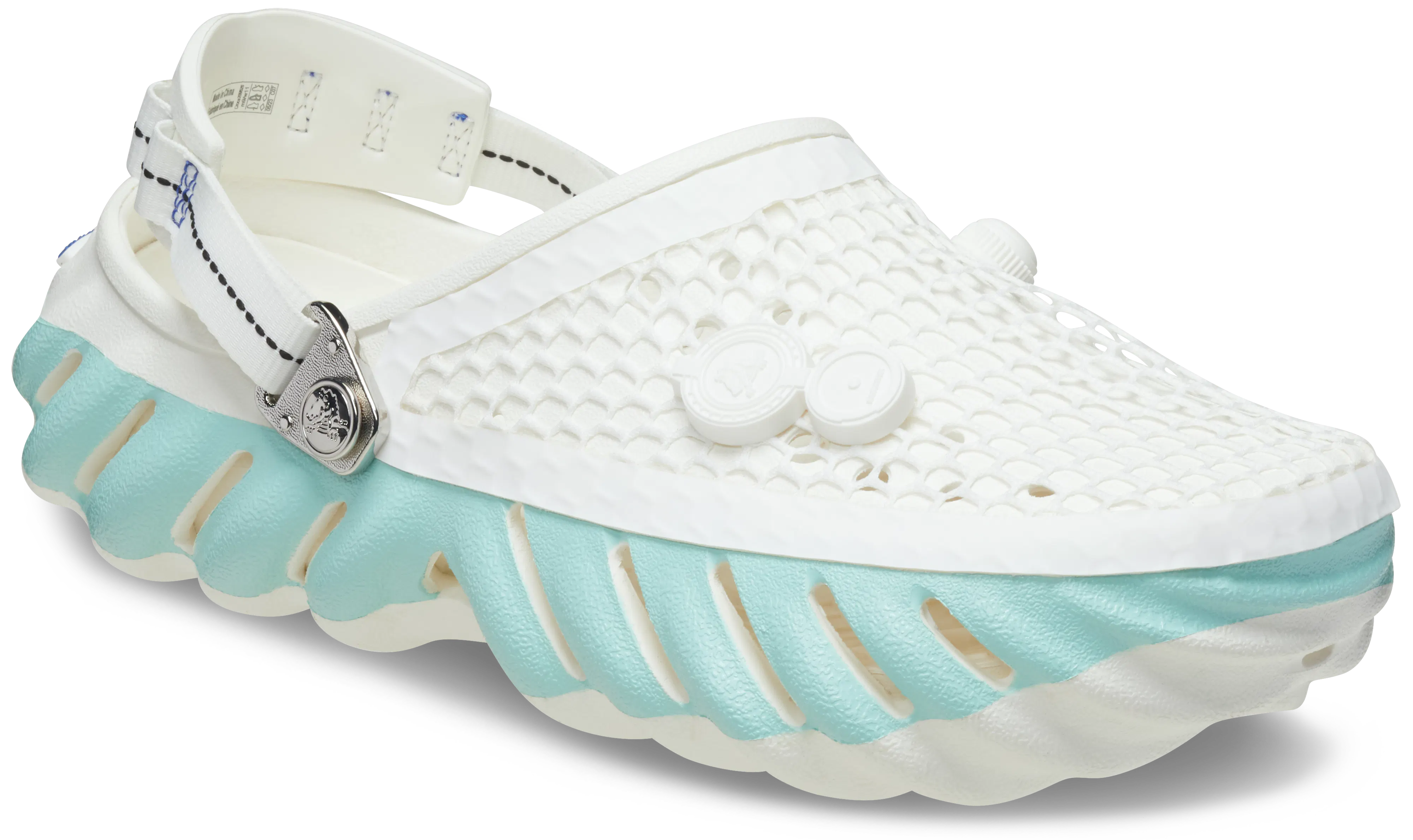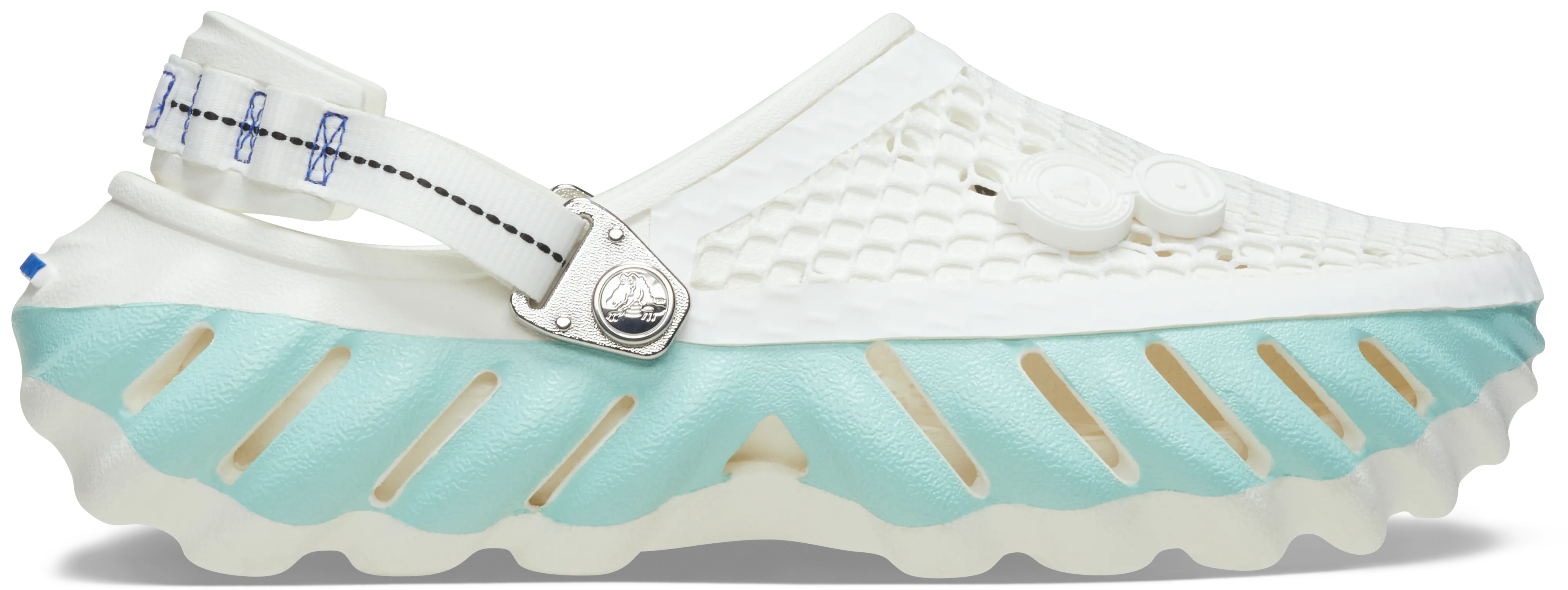 The Kanghyuk x Crocs Echo Clog takes on bold dimension with unconventional styling. Net texturing and bold stitching mimic design details from vehicle airbags, with light-up Jibbitz™ charms that look like airbag valves and deploy mechanisms. A beacon of unconventional style, the Kanghyuk Echo Clog was made for driving fashion forward.