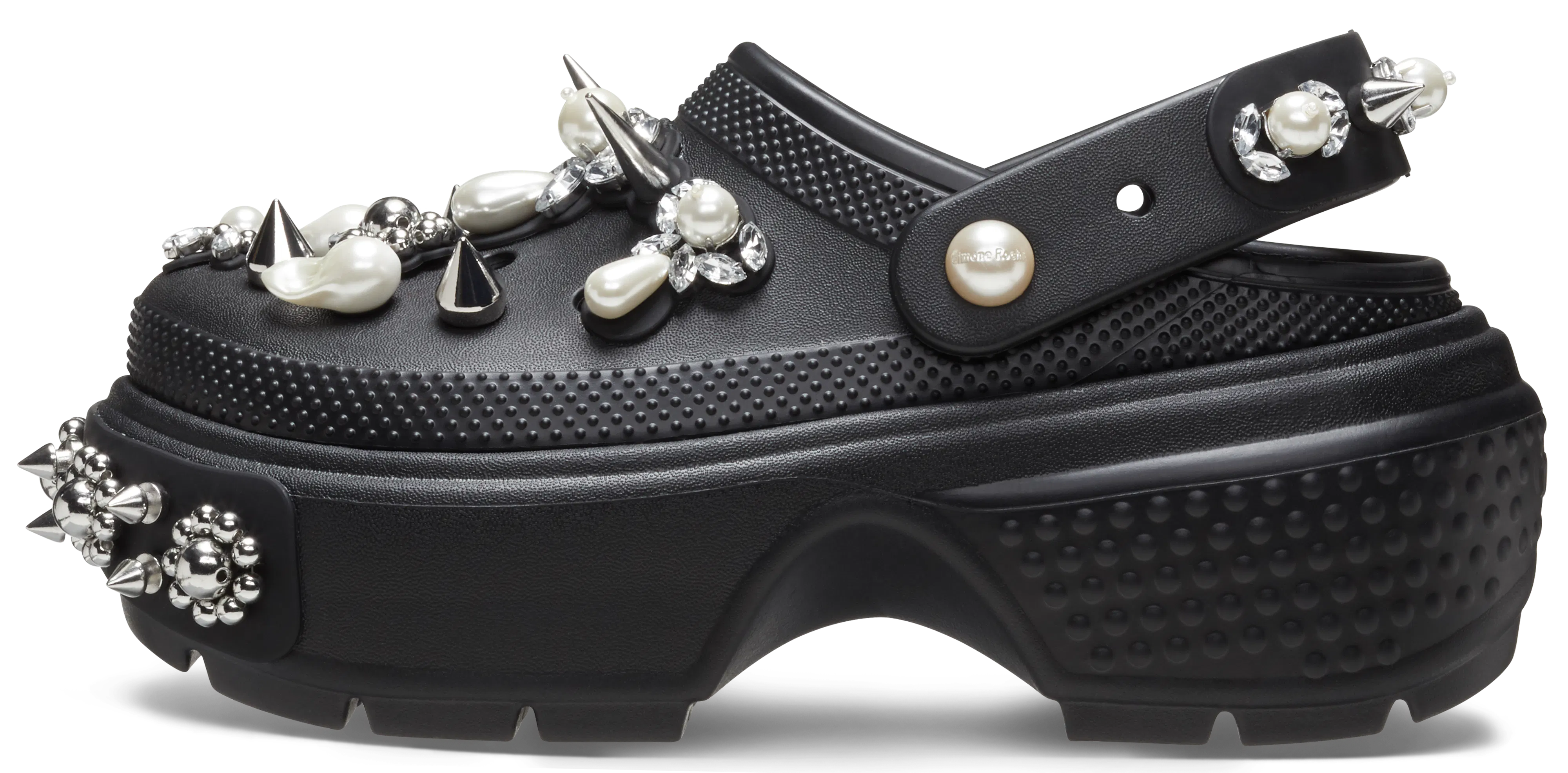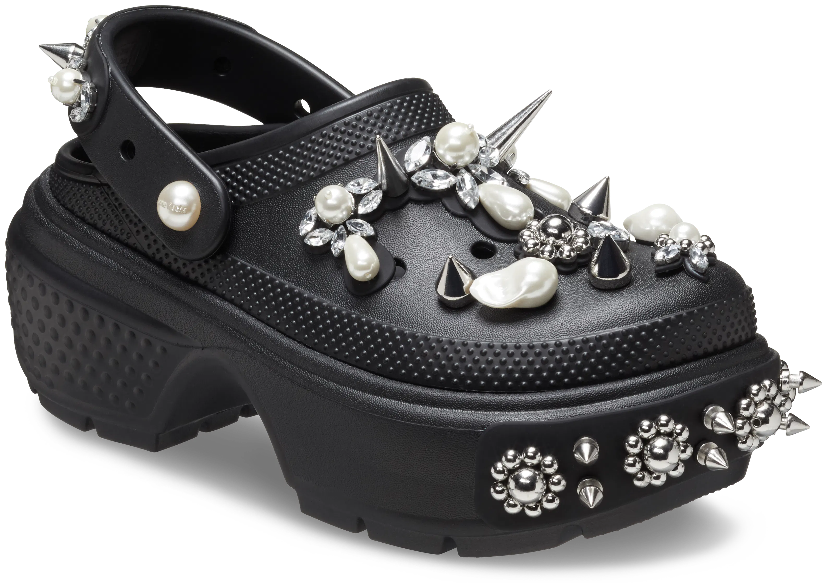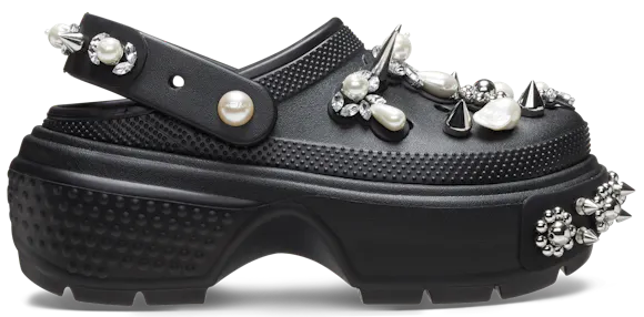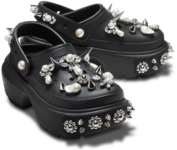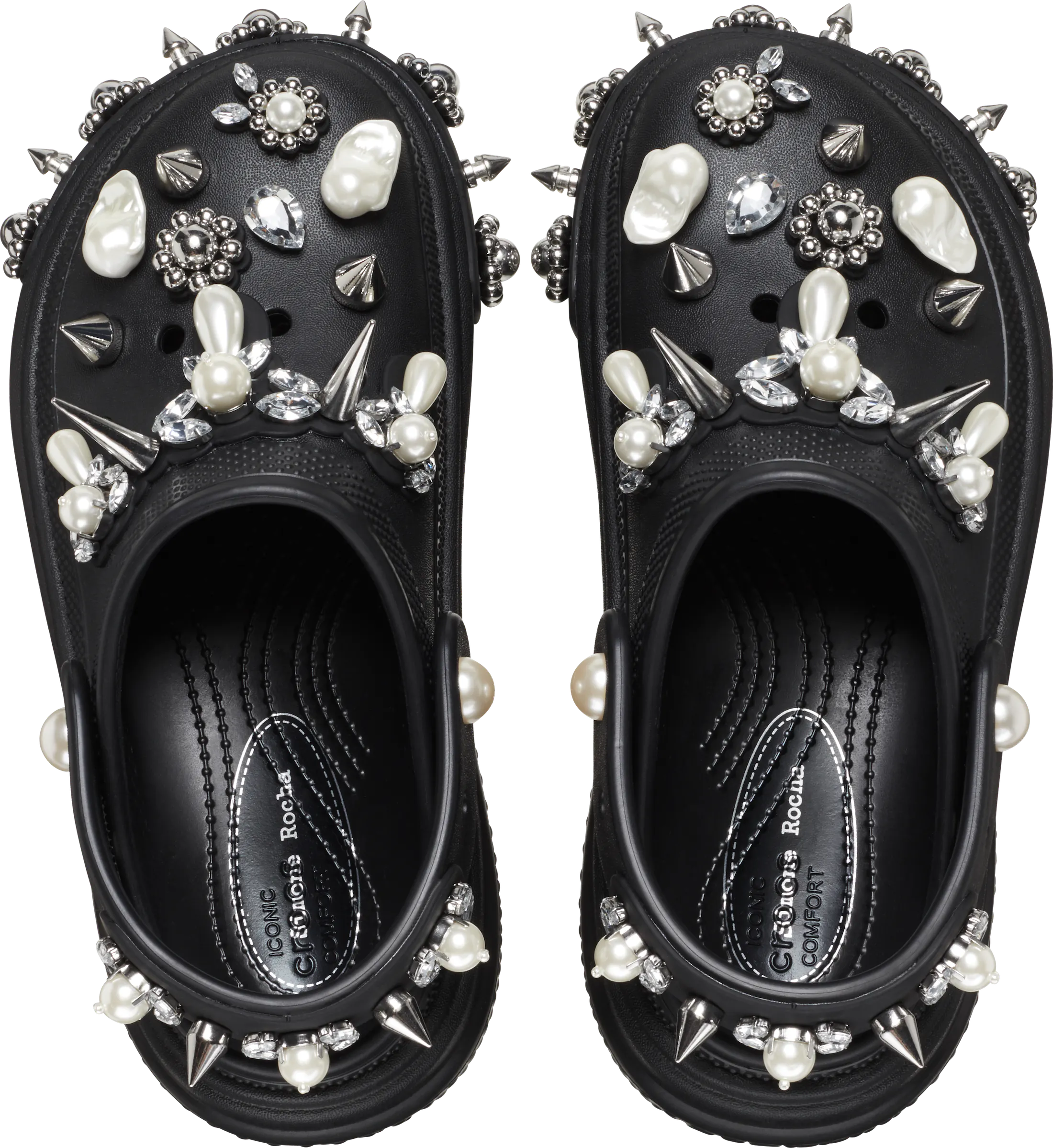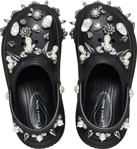 하이 패션과 새로운 높이를 선사하는 시몬 로샤 X 크록스 스톰프 클로그는 플랫폼 스타일로 눈길을 끕니다. 반짝이는 스파이크와 크리스탈이 러그 솔 앞부분과 발목 스트랩을 감싸며, 진주 리벳이 포인트로 자리 잡고 있습니다. 독점적인 Jibbitz™ 참 컬렉션이 클로그 상단을 장식해 우아하면서도 펑크 록 스타일을 연출합니다.